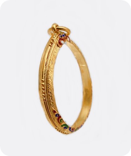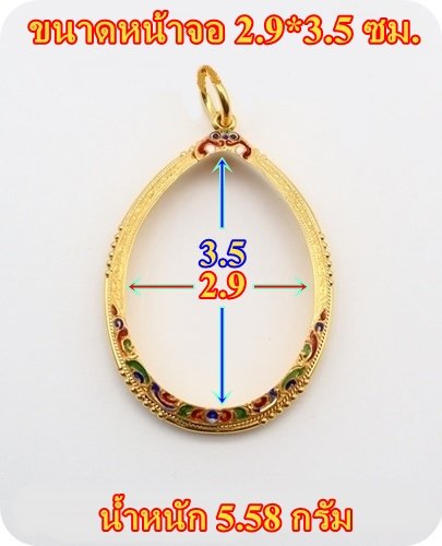 กรอบทรงรี ยกซุ้ม-หัวสิงห์ลงยา ด้านข้างใส่เกลียว ไข่ปลา ใส่พระทรงรี ทรงรูปไข่